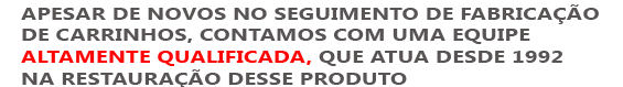 Fabricar e reformar carrinhos, priorizando a qualidade e excelência no atendimento ao cliente. Treinar e capacitar nossos colaboradores na busca do desenvolvimento e crescimento da equipe, valorizando nosso capital intelectual.